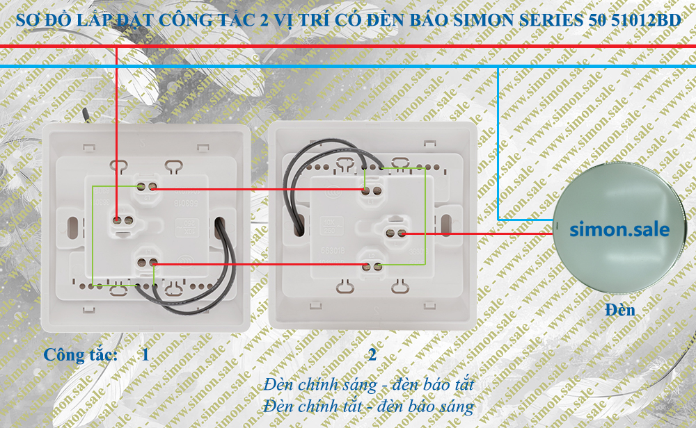 Cách 1: Đèn báo sẽ sáng ngược với đèn chính, nghĩa là đèn chính được bật thì đèn báo sẽ tắt, đèn chính tắt thì đèn báo sẽ sáng.