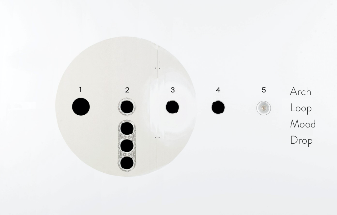 ![]() | Tích hợp trong không gian và bố cục Ngoài ra, Loop cho phép các nhóm bố cục trang trí chiếu sáng bức tường, tạo ra một trò chơi trực quan của ánh sáng và bóng tối. |